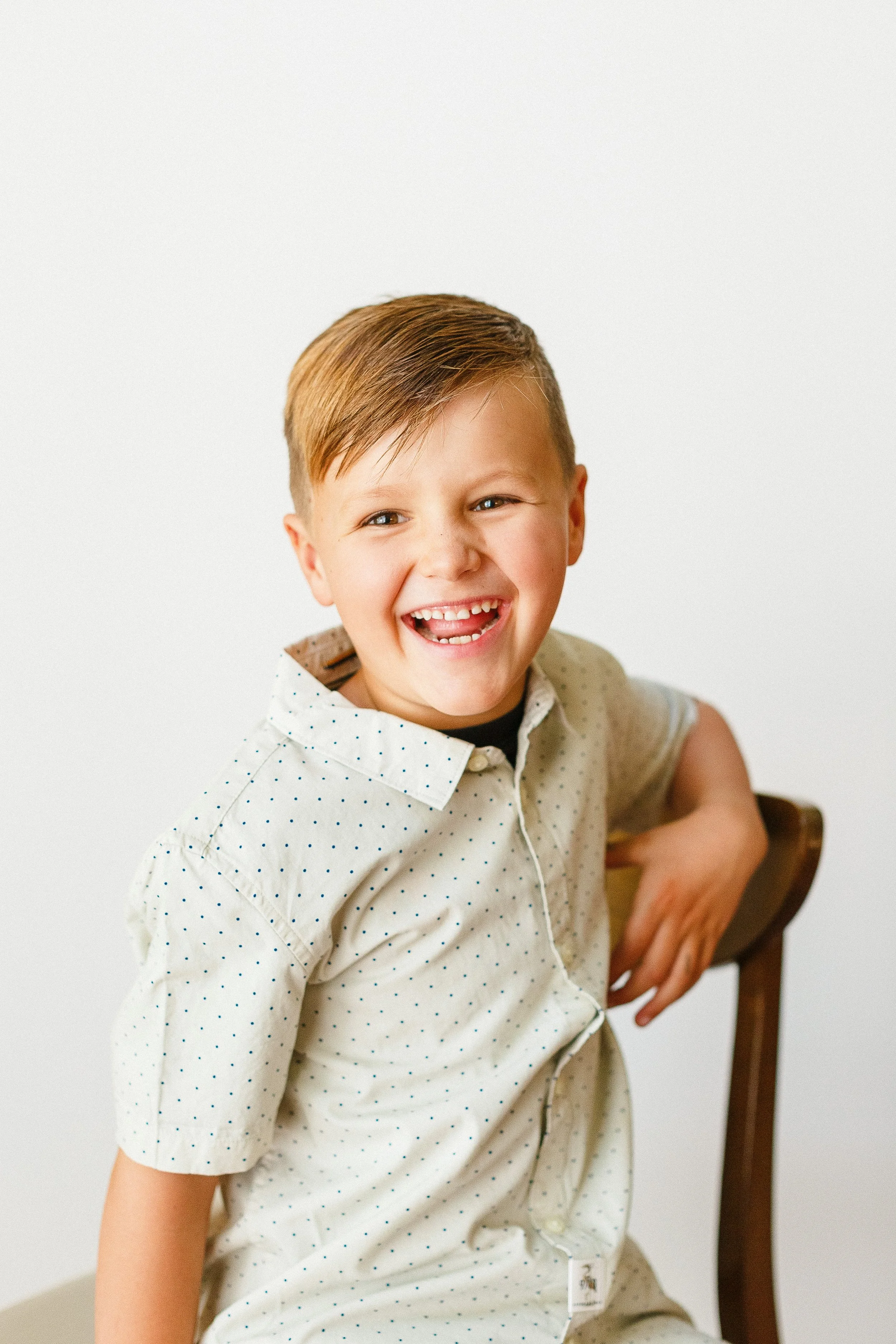 What should they wear? Think simple. Avoid logos, lettering and fluorescent colors — other than that, let their personality show up in their clothing! Oh, and don’t worry about shoes, bare feet are welcome, and their feet won’t show much in the photos anyway!